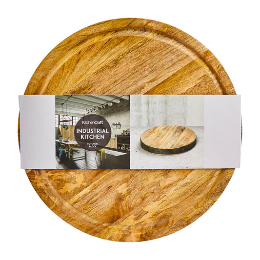 KitchenCraft Industrial Kitchen Handmade Round Wooden Butcher's Block Chopping Board