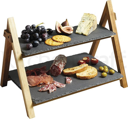 KitchenCraft Artesà 2 Tier Slate & Wood Serving Stand ART2TSERVE