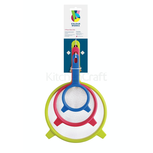 KitchenCraft Colourworks Set of 3 Stainless Steel Fine Mesh Round Sieves CWSTRAINSET
