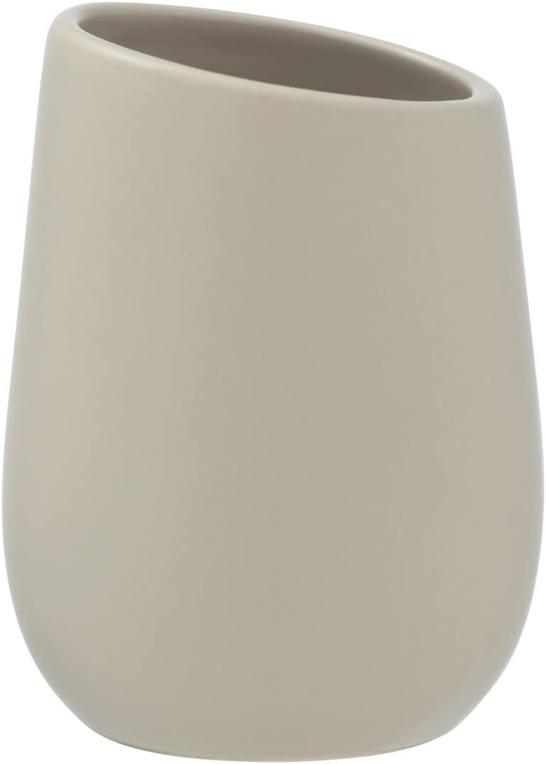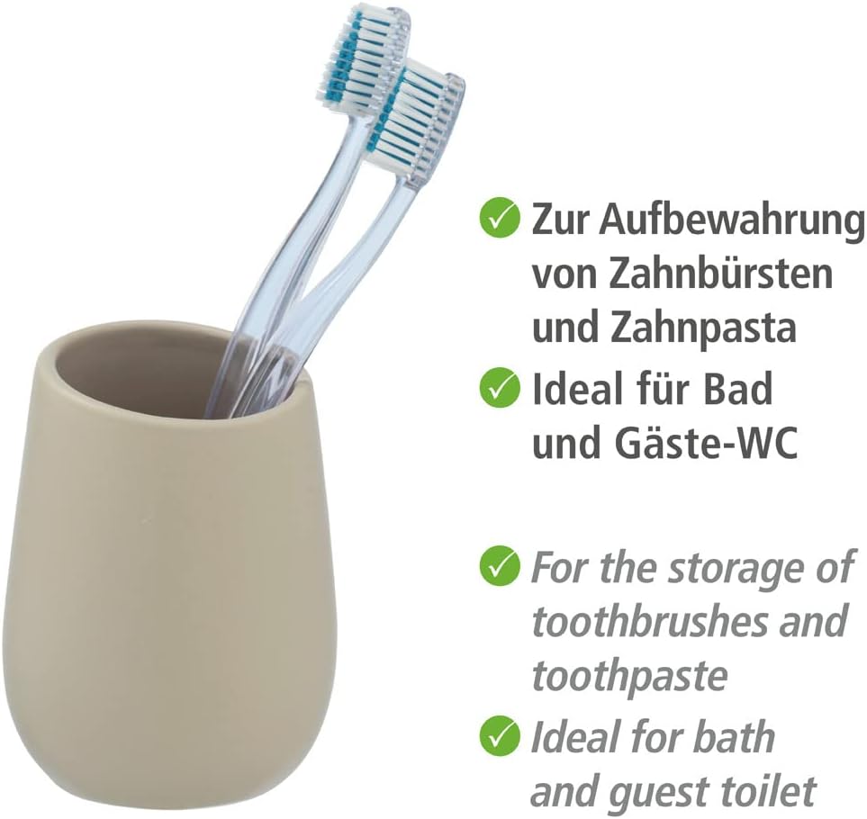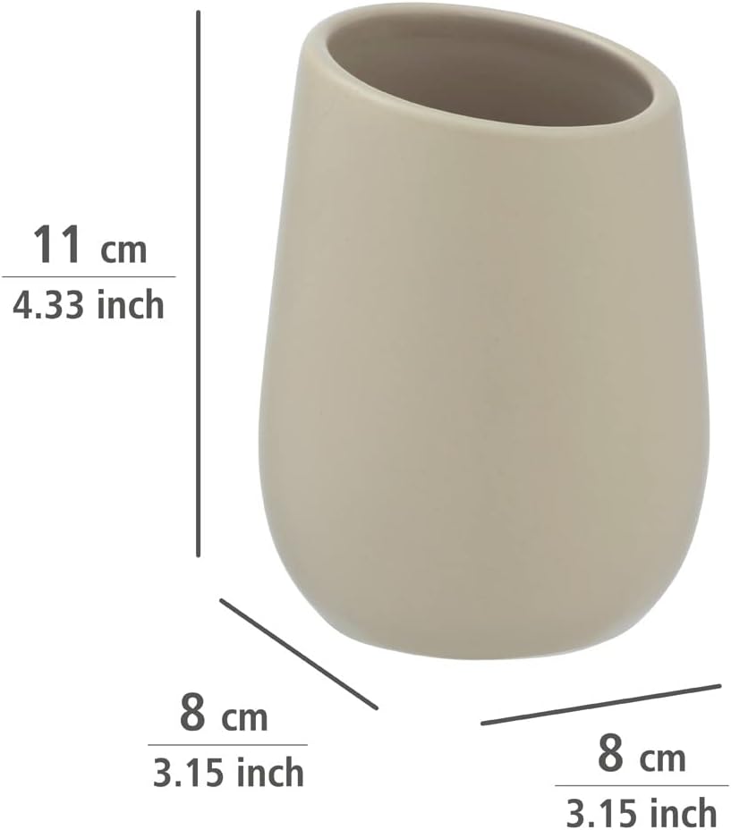 - Box contents: Wenko Badi toothbrush cup in simple beige, made of ceramic, dimensions (W x D x H): diameter 8 x 11 cm