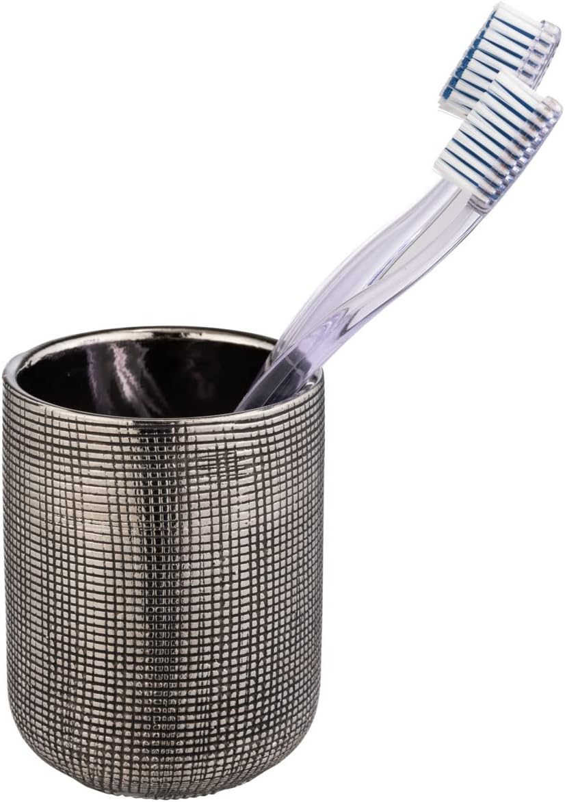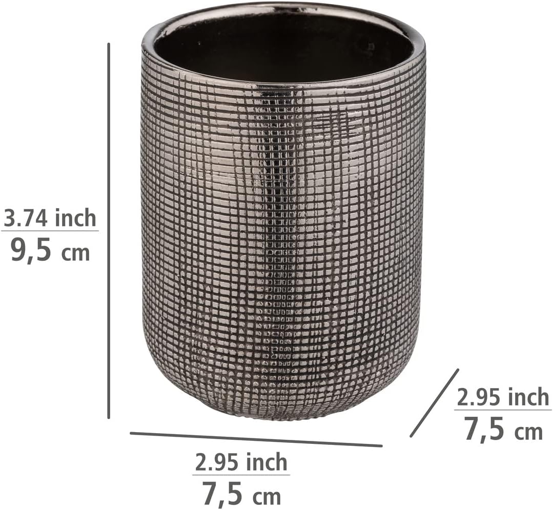 - Scope of delivery: 1 x Silver Rivara toothbrush mug by WENKO, ceramic toothbrush mug, hand-painted, with textured surface, dimensions (W/D x H): Ø 7.5 x 9.5 cm, each piece is unique!