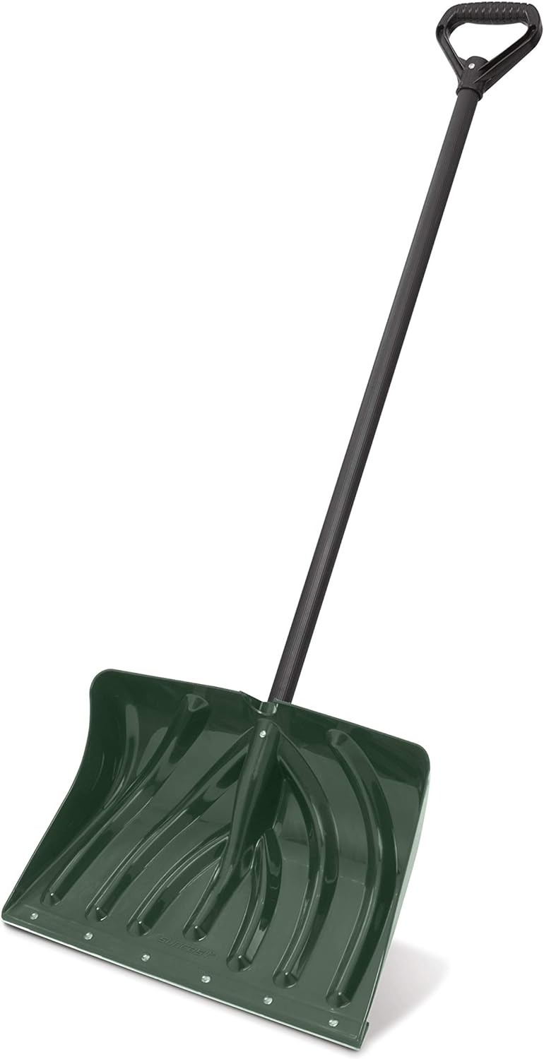 Remove Snow More Easily With The Versatile Suncast 18 In. (Width Of Blade) Bent Handle Snow Shovel. The Deep Blade And Angled Rib Pattern Allow You To Both Shovel And Push Snow With Just One Tool. The Handle Design Helps Give Less Strain On Your Back When Shoveling. It Offers Comfortability And Reliability. This Allows More For Efficient Shoveling Saving You Time. It Includes A Galvanized Steel Wear Strip. Use This Shovel All Around Whether Its On A Sidewalk Or In Your Driveway. The Winter Season Can Bring A Ton Of Snow With It; Show You Are Ready With The Suncast Snow Shovel/Pusher.