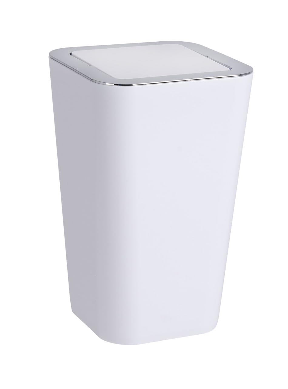 - Convenient waste bin with swing cover for bathroom or household