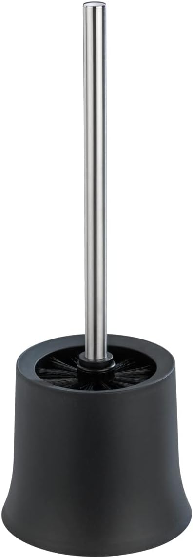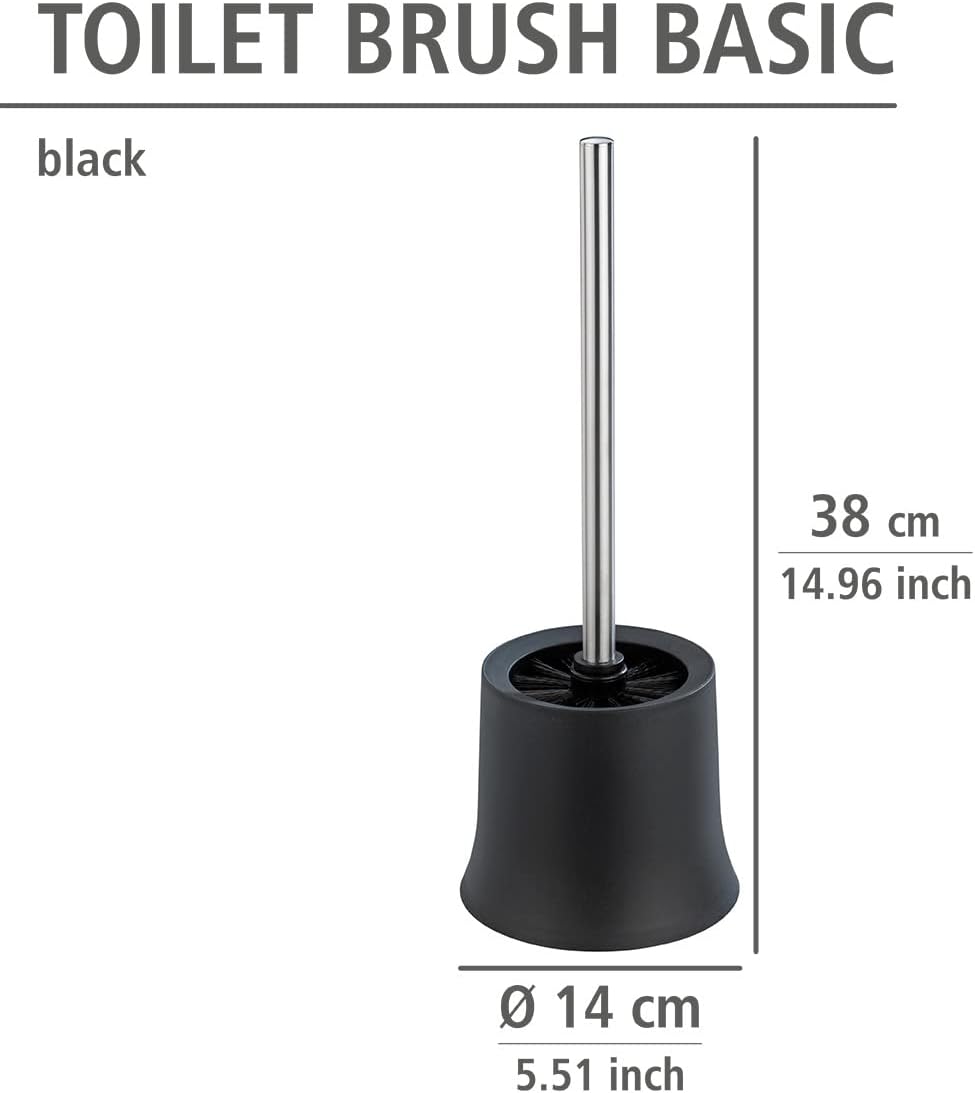 - SCOPE OF DELIVERY: Basic toilet brush holder by WENKO, plastic brush holder incl. toilet brush toilet with replaceable black brush head Ø 3.3 in and a stainless steel handle. Dimensions (W/D x H): Ø 5.5 x 15 inches